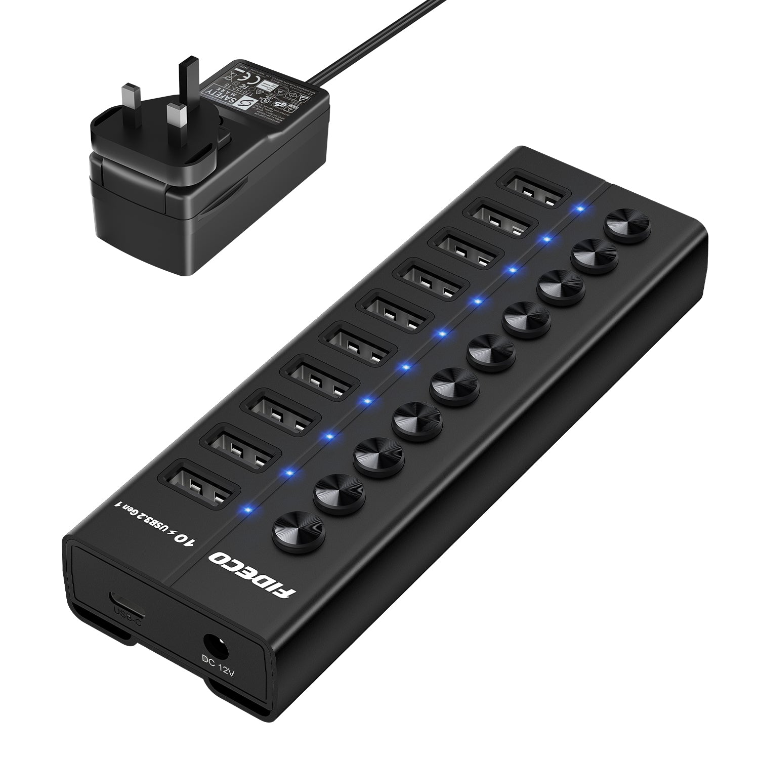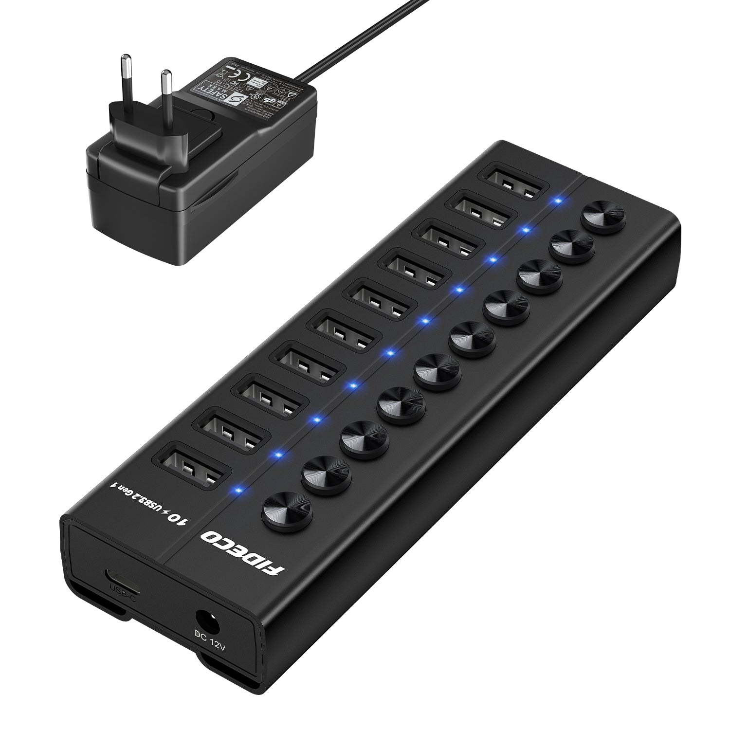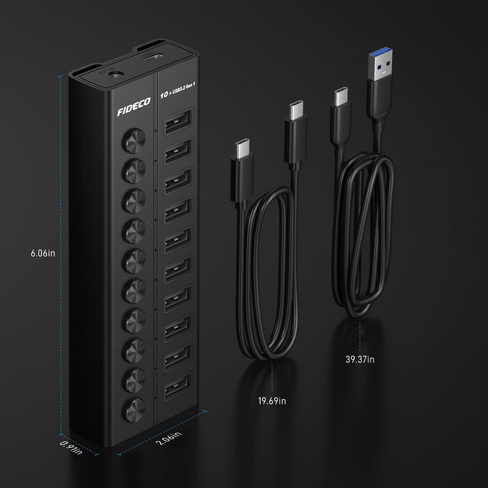 FIDECO 10-Port USB 3.2 Gen 1 Hub focus on slim and mini design, specially designed for USB extension (data transfer or charging).