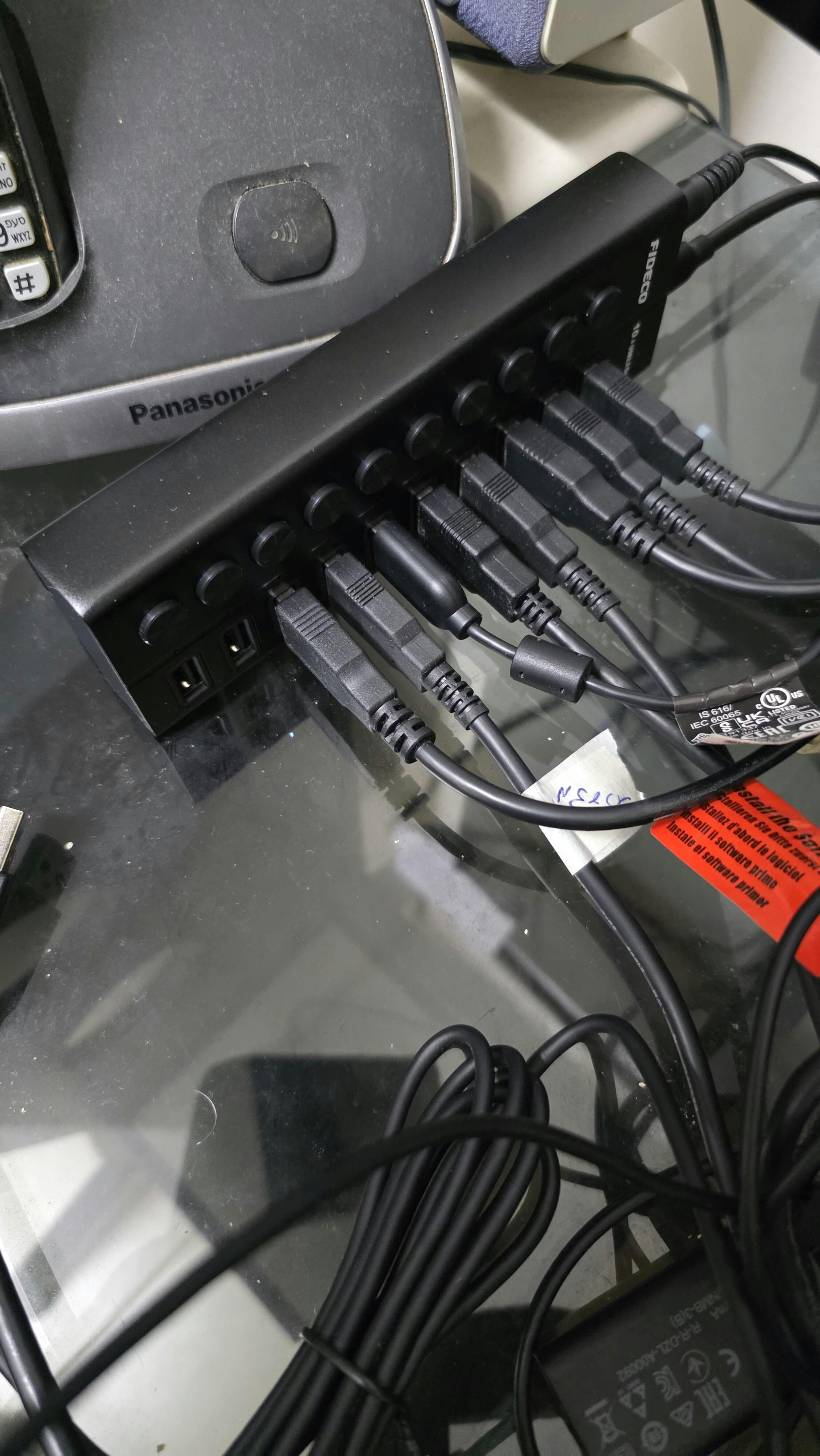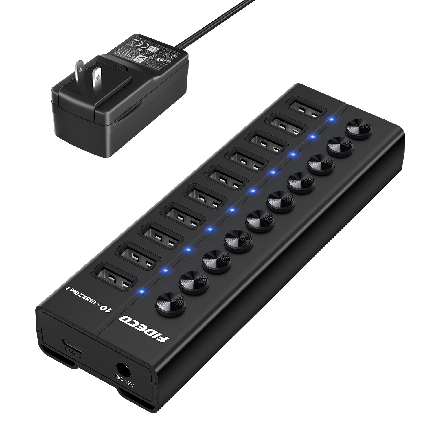 FIDECO USB splitter is equipped with 12V/4A power adapter, and can support simultaneous connection of total 10 devices.
