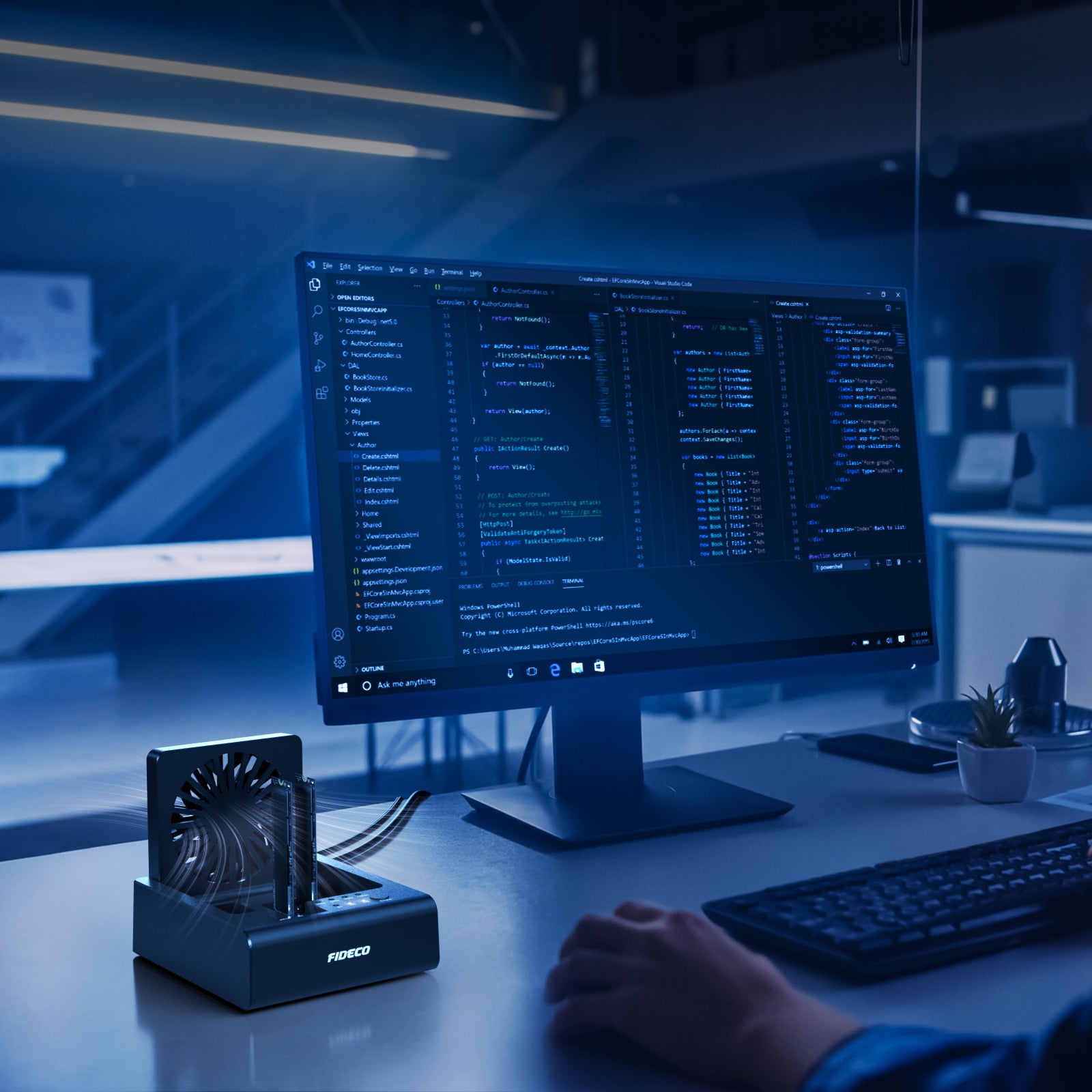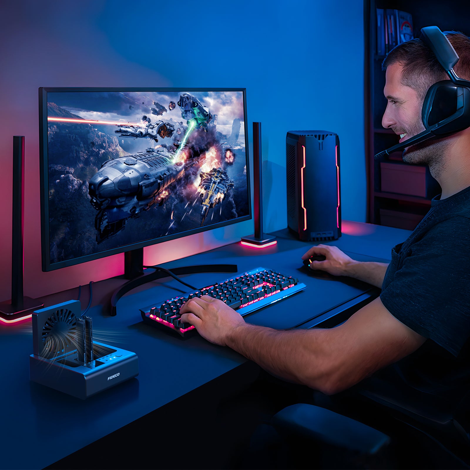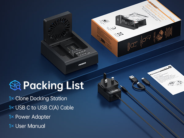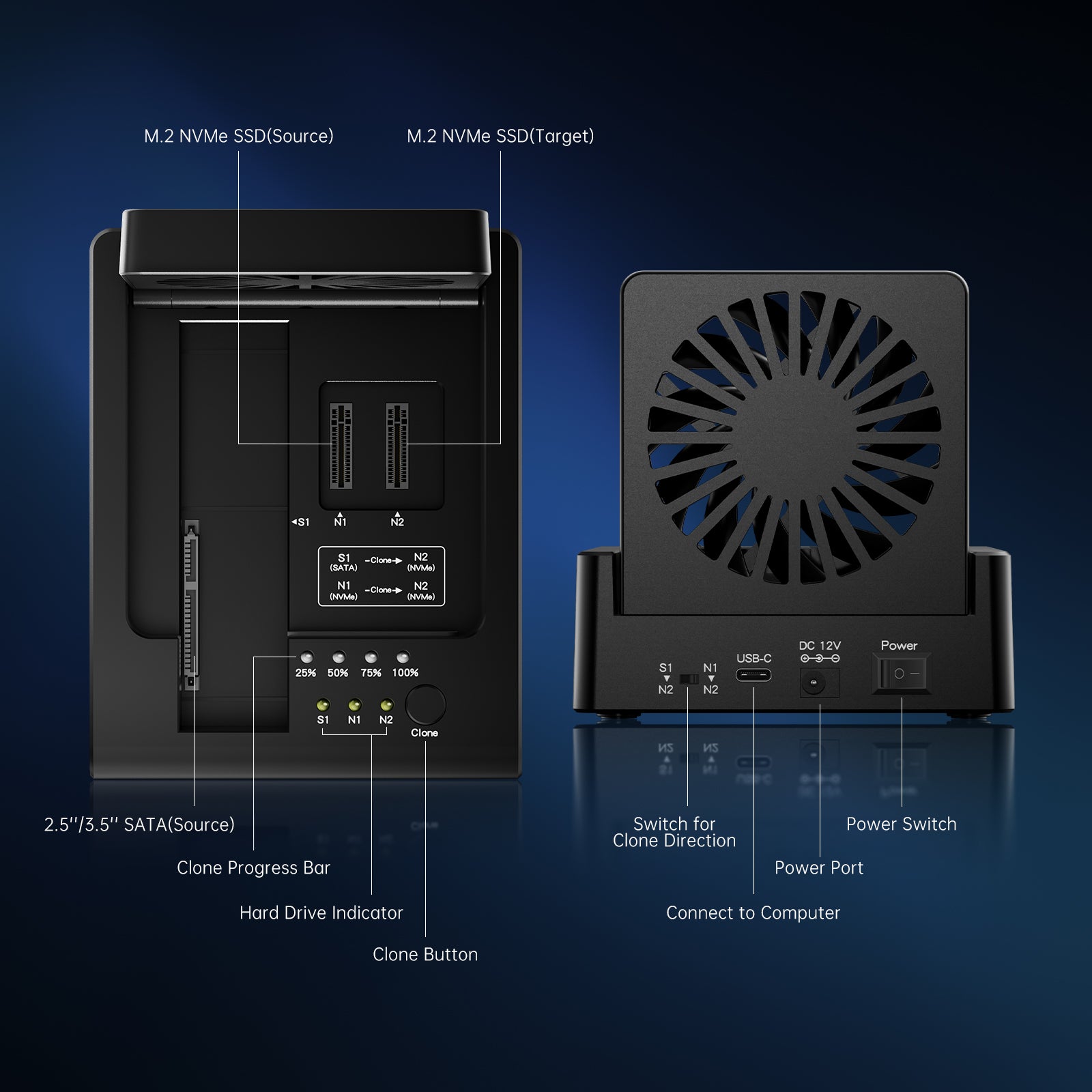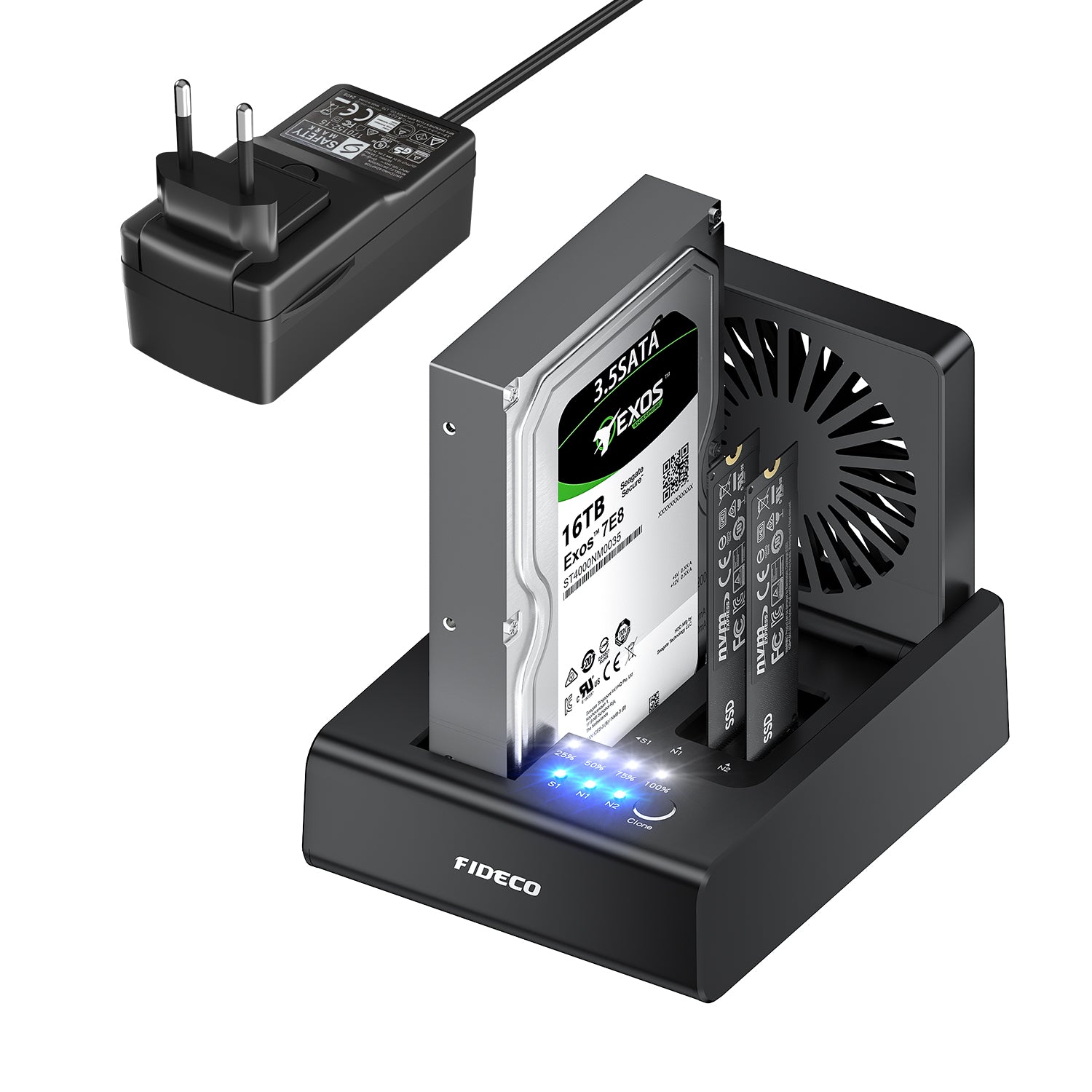 FIDECO HDD/SSD Clone Docking Station with Cooling Fan, supports SATA HDD/SSD, M.2 NVMe SSD